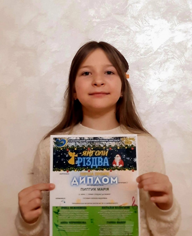 - Марія Пиптик (4 клас) – перші премії на конкурсах «Колір мистецтва», «Янголи Різдва», «Галактика талантів»;