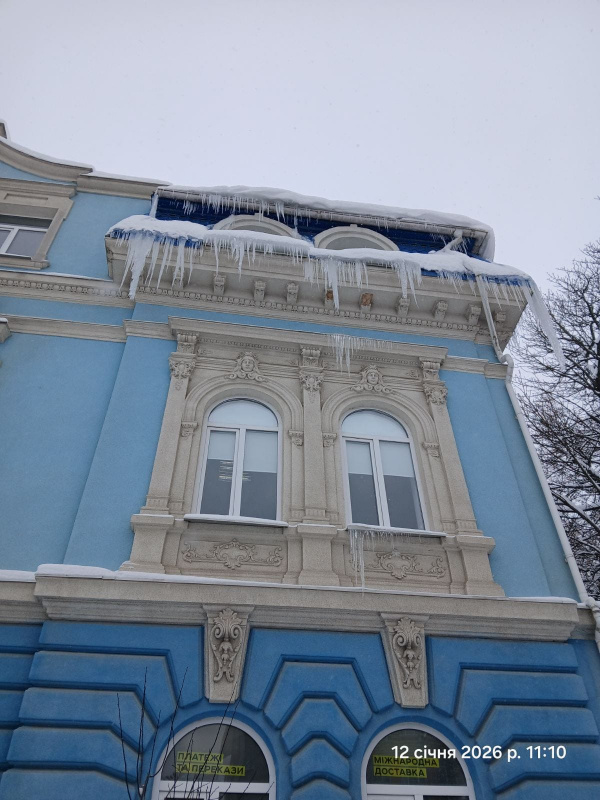 У понеділок, 12 січня, працівниками управління проведено обстеження 37-ми багатоквартирних житлових будинків, за результатами яких зафіксовано факти утворення бурульок, що звисають з покрівель і створюють загрозу пішоходам.