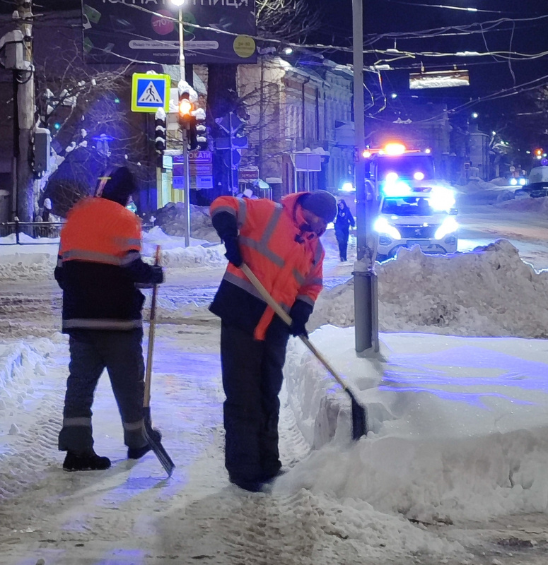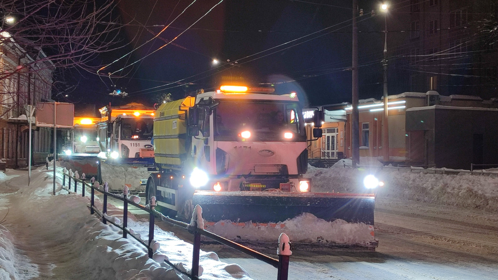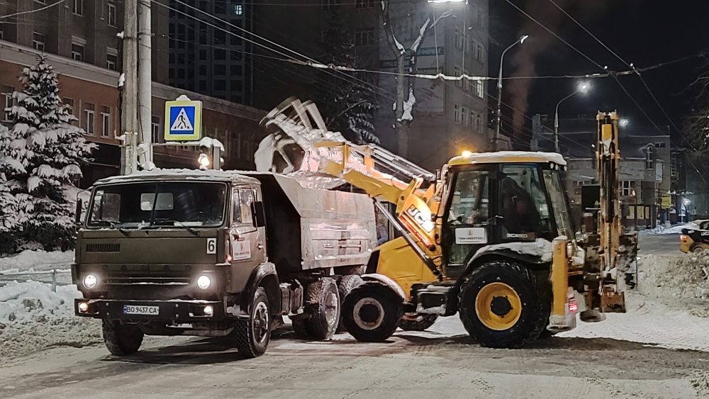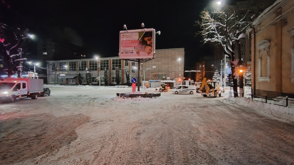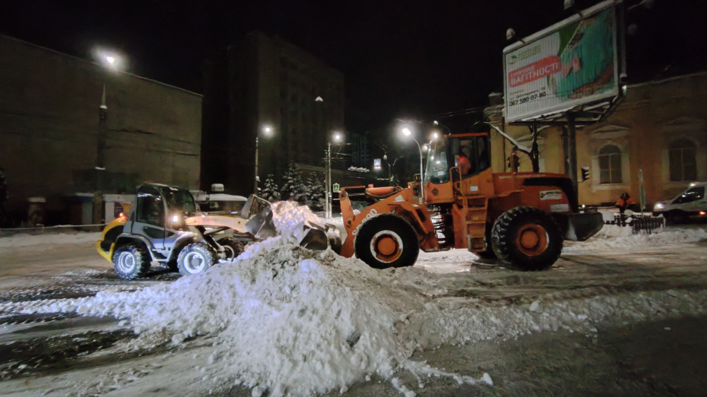 Вночі 13 січня комунальні служби проводили активне вивезення снігу з центральних вулиць Тернополя, залучивши 16 одиниць спецтехніки та 34-ох працівників.