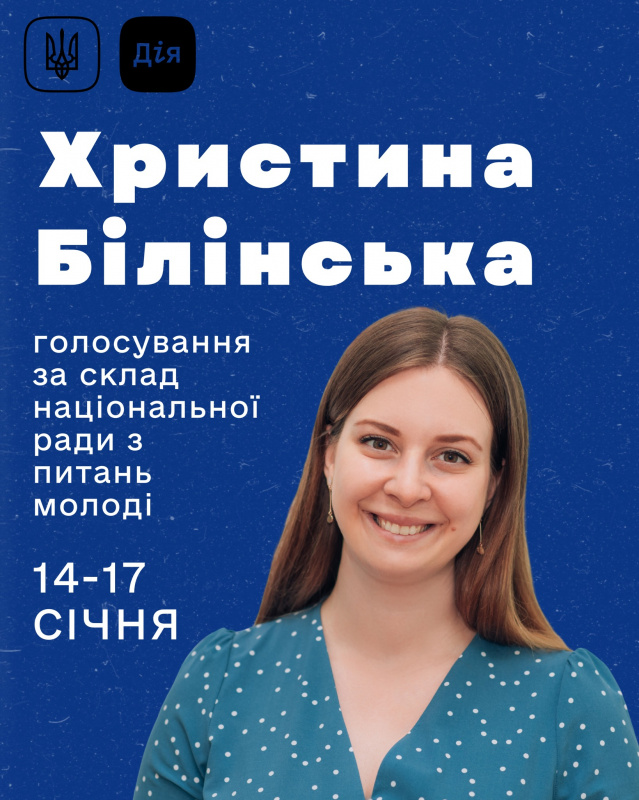 Начальниця управління сім’ї, молодіжної політики та захисту дітей Тернопільської міської ради Христина Білінська бере участь у голосуванні до складу Національної ради з питань молоді як кандидатка від громадських організацій. Голосування триває з 14 по 17 січня у застосунку «Дія».