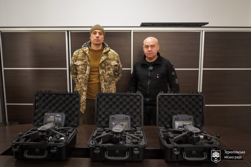 Міський голова Тернополя Сергій Надал передав для потреб військовослужбовців три квадрокоптери DJI Mavic 3T, які будуть використовуватися батальйоном безпілотних систем 110-ї окремої механізованої бригади імені генерал-хорунжого Марка Безручка.