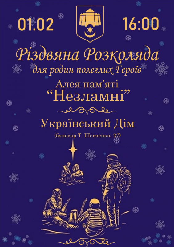 У Тернополі відбудеться різдвяна розколяда за участю родин полеглих захисників. Захід пройде у неділю, 1 лютого, біля Алеї пам’яті «Незламні». Початок - о 16:00.
