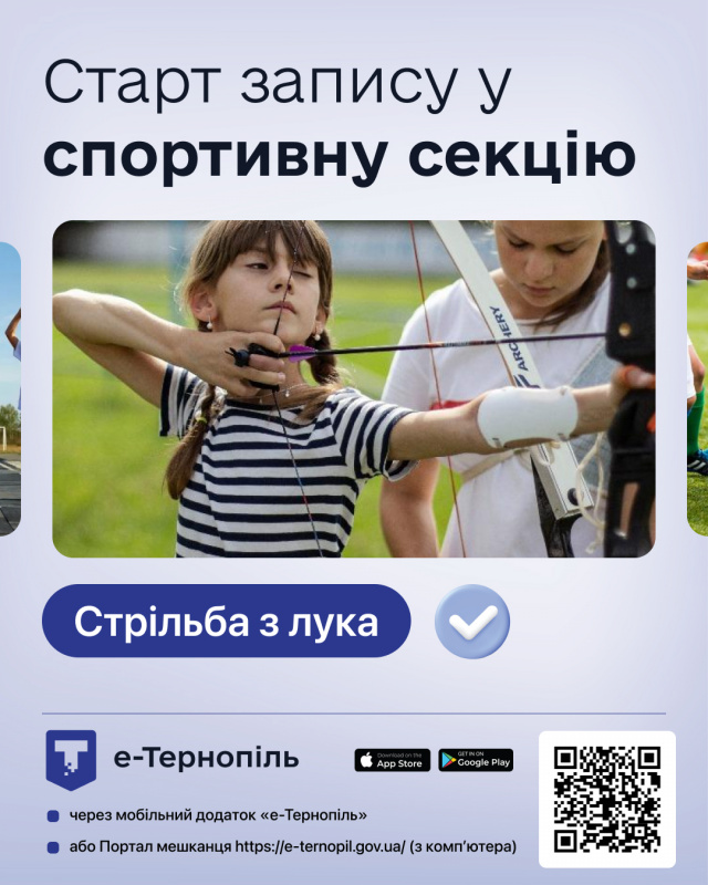Запис до спортивних груп здійснюється в електронному форматі - через мобільний додаток «е-Тернопіль» або на «Порталі мешканця». Такий формат дозволяє батькам швидко та без черг подати заявку.
