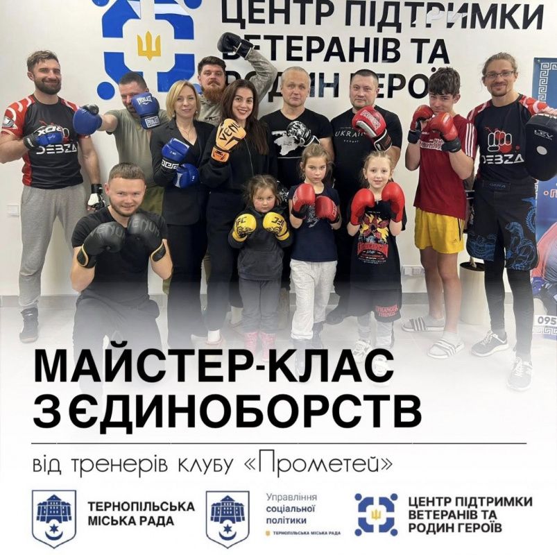 У Тернополі на базі Центру підтримки ветеранів та родин Героїв відбувся майстер-клас від тренерів клубу «Прометей» з єдиноборств для ветеранів та їхніх сімей.