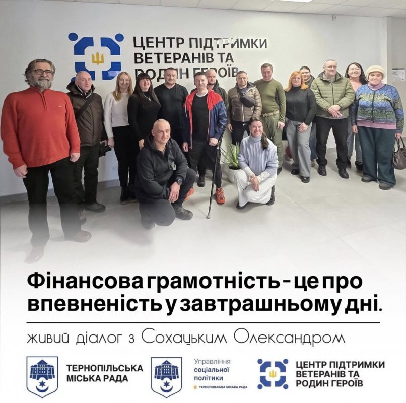 У Центрі підтримки ветеранів та родин Героїв відбулася зустріч, присвячена фінансовій грамотності. Захід провів Сохацький Олександр - фінансовий радник та спікер національного проєкту з фінансової грамотності.