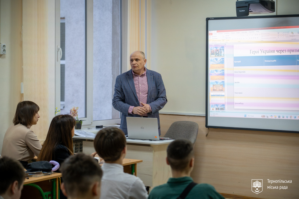 Під час уроку міський голова наголосив на важливості пам’яті про героїв та значенні мужності для сучасної України.