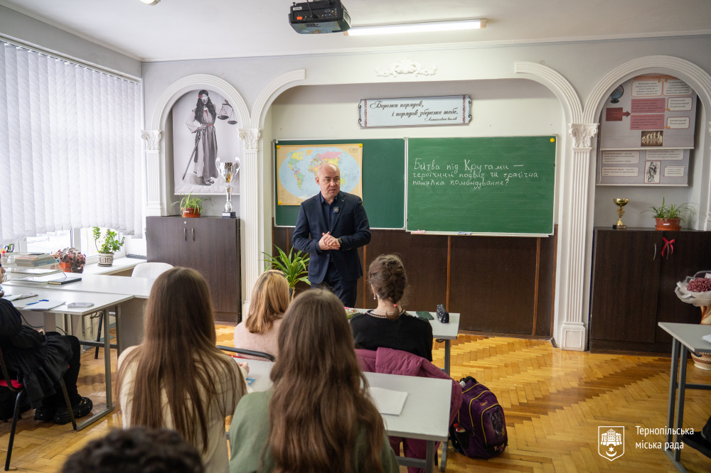 Урок проходив у 10-А класі і був присвячений темі «Битва під Крутами. Героїчний подвиг чи трагічна помилка командування?». Під час заняття учні вшанували пам’ять батька Станіслава, який загинув, виконуючи бойове завдання.