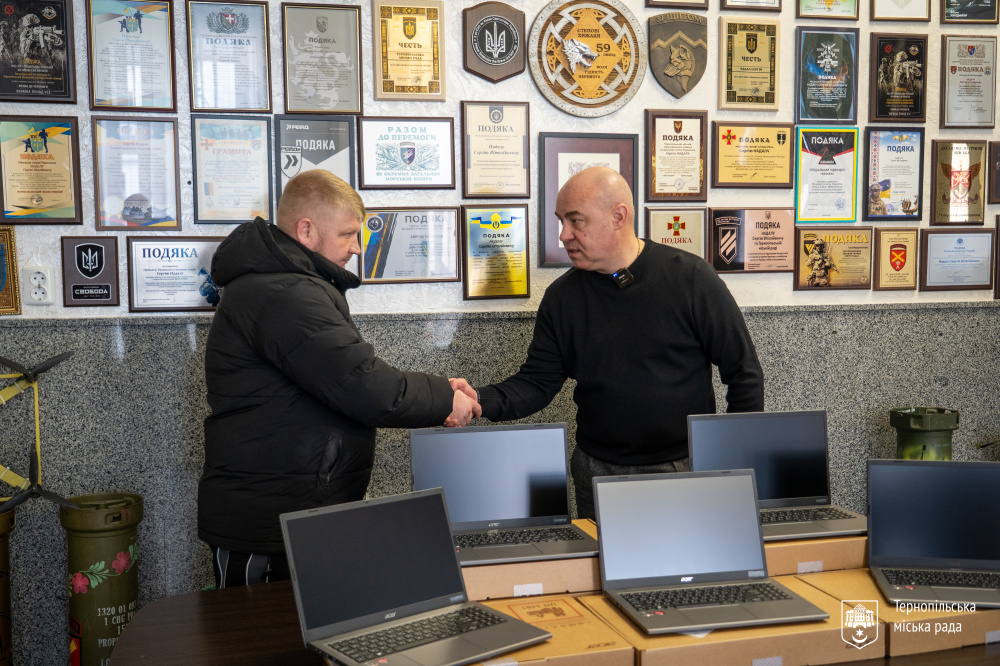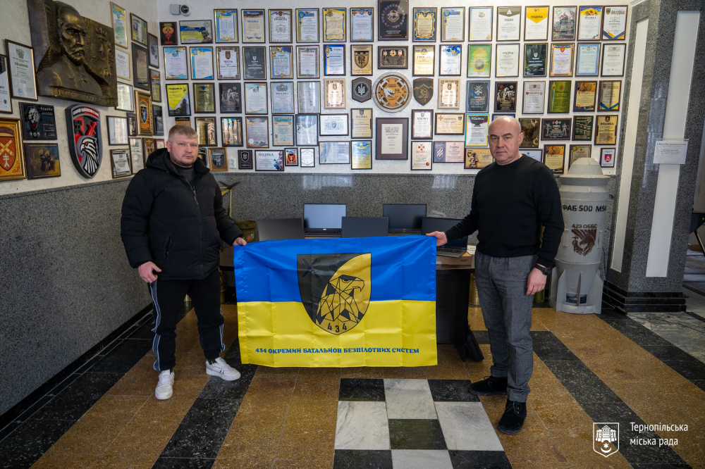 Сьогодні, 17 лютого, міський голова Тернополя Сергій Надал передав допомогу для 434-го окремого батальйону безпілотних систем 15-го армійського корпусу, а саме: сім ноутбуків Acer Extensa 15 EX215-24-R7JY загальною вартістю 136 080 гривень.