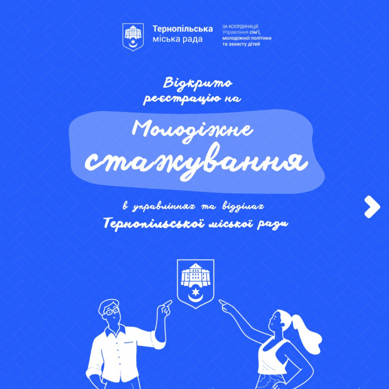 Від 19 лютого в Тернополі розпочинається прийом заявок для участі в молодіжному стажуванні у виконавчих органах міської ради. Молодь матиме змогу пройти практику в 32 відділах та управліннях, побачити роботу міської влади зсередини та долучитися до реалізації рішень, що стосуються громади.