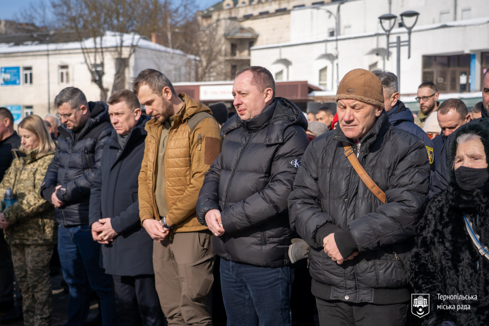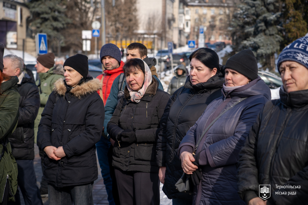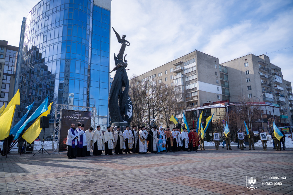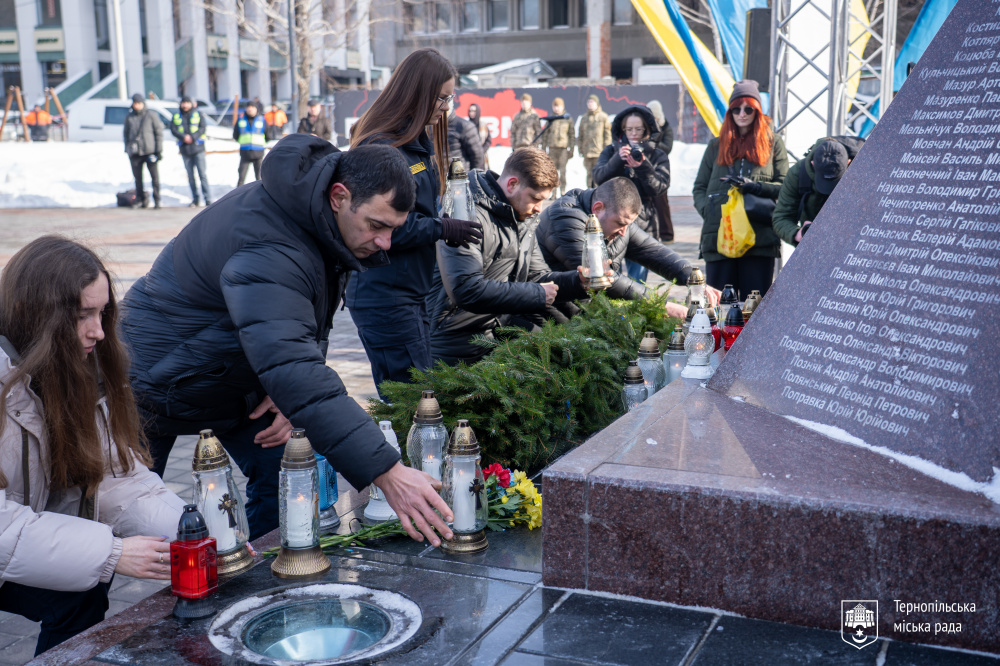 Мешканці громади та гості міста прийшли, щоб віддати шану тим, хто загинув за свободу, демократичні цінності й європейський вибір України. Представники духовенства різних конфесій спільно звершили поминальну молитву за полеглими. До вшанування долучився секретар Тернопільської міської ради Ігор Гірчак, який разом із присутніми схилив голову в хвилині мовчання та поклав квіти до пам’ятника Небесній Сотні.