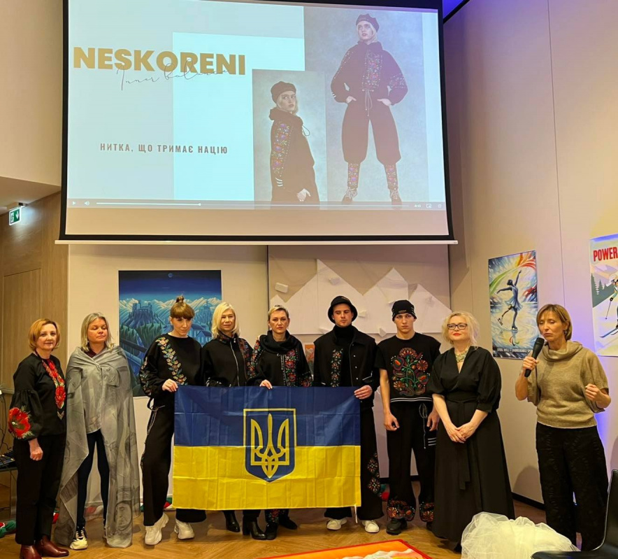На європейській сцені тернополяни показали колекцію спортивного одягу «NESKORENI», у якій поєднали сучасний спортивний стиль із елементами борщівської вишивки. Вбрання виконане у чорній гамі - як символ нинішніх реалій, в яких живе Україна, її боротьби, стійкості та незламності.