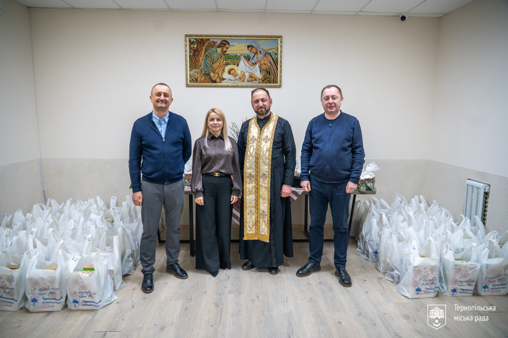 У Тернополі традиційно напередодні Воскресіння Христового освячують великодні кошики для соціально вразливих категорій мешканців громади. Цьогоріч святкові продуктові набори отримають 1050 родин, серед яких - сім’ї загиблих і зниклих безвісти захисників, а також ветерани з інвалідністю І та ІІ групи внаслідок війни.