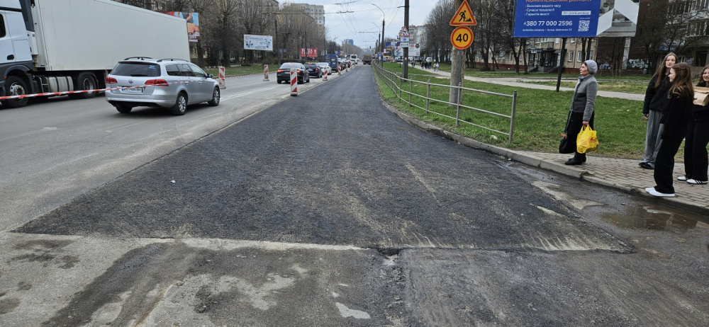 У Тернополі не зупиняються роботи з поточного ремонту дорожнього покриття. Сьогодні, 30 березня, на вул. 15 Квітня триває укладання асфальту на правій смузі ділянки від «Сільпо» до проспекту Злуки. Також впродовж вихідних підрядники виконали фрезерування та укладання нового асфальтобетонного покриття на лівій смузі.