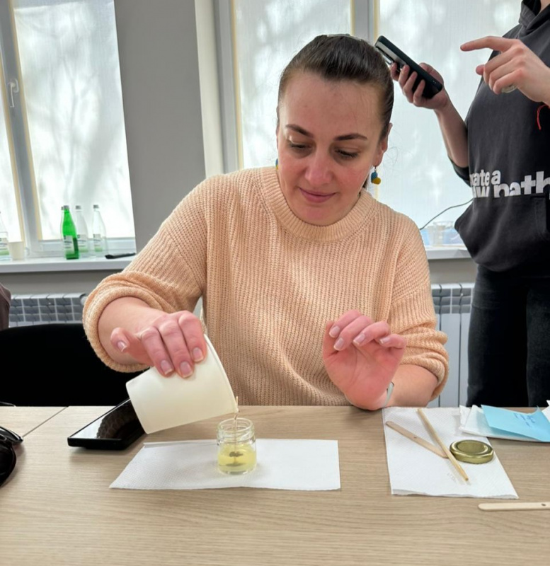 У Тернополі в Центрі підтримки ветеранів та родин Героїв відбувся майстер-клас із виготовлення соєвих свічок для дружин військовослужбовців.