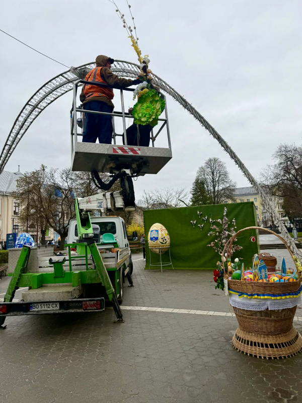 У Тернополі напередодні свята Воскресіння Христового центральні вулиці міста традиційно набувають особливої святкової атмосфери. Цьогоріч головна великодня локація «Традицій. Сили. Надії» розміститься у сквері по вул. В. Чорновола, де вже розпочали встановлення тематичної експозиції.