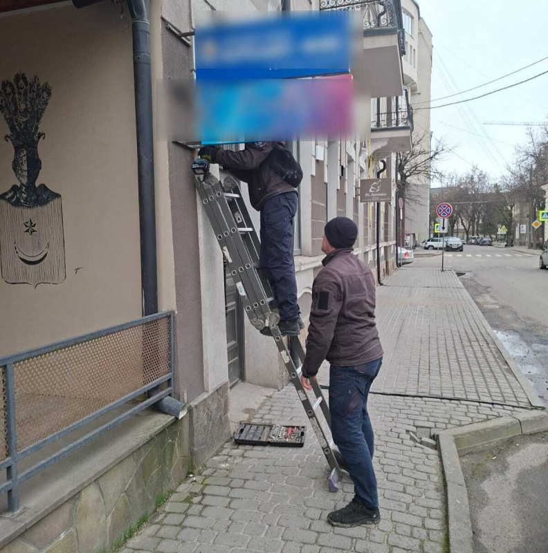 Заходи провели на виконання рішення виконавчого комітету Тернопільської міської ради від 11 березня 2026 року №316 «Про демонтаж вивісок».