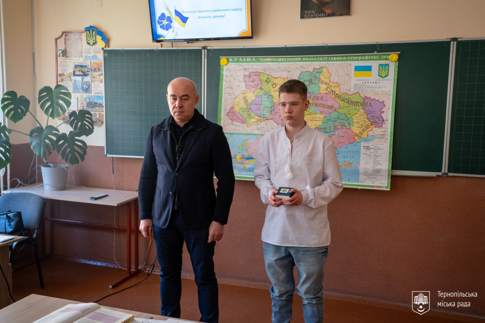У Тернопільській загальноосвітній школі №23 під час уроку історії України відбулося вручення пам’ятного подарунка дев’ятикласнику Іллі - сину загиблого захисника Віталія Пєнкіна. Міський голова Сергій Надал передав школяру іменний годинник як символ вдячності від усієї Тернопільської громади за самовідданість та подвиг його батька.