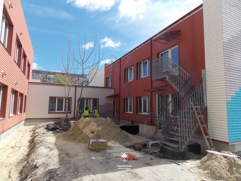 У Тернопільському закладі дошкільної освіти (ясла-садок) №14 активно тривають роботи з термомодернізації будівлі. Частину запланованих робіт уже завершено, інші - на фінальній стадії виконання.