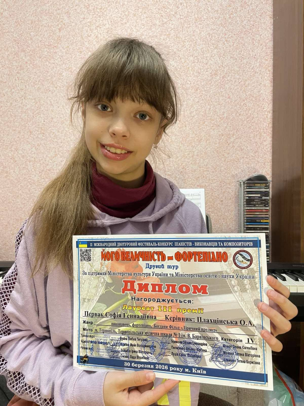 Учениці фортепіанного відділу Тернопільської музичної школи №1 імені Василя Барвінського здобули призові місця на II Міжнародному двотуровому фестивалі-конкурсі піаністів-виконавців та композиторів «Його величність – фортепіано».