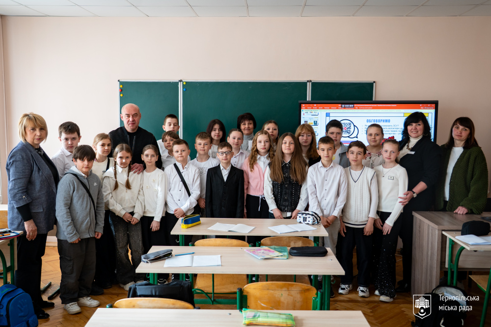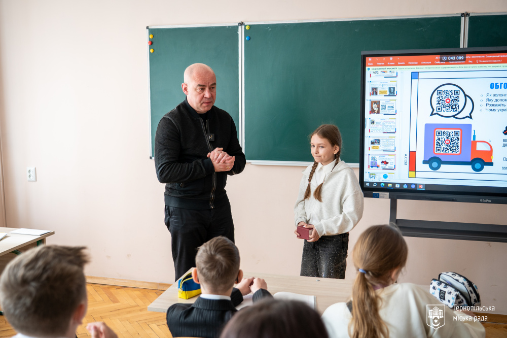 У цьому навчальному закладі навчається його донька Карина - учениця 5-В класу. Під час уроку школярі вивчали тему волонтерського руху, як він зароджувався та його особливості.
